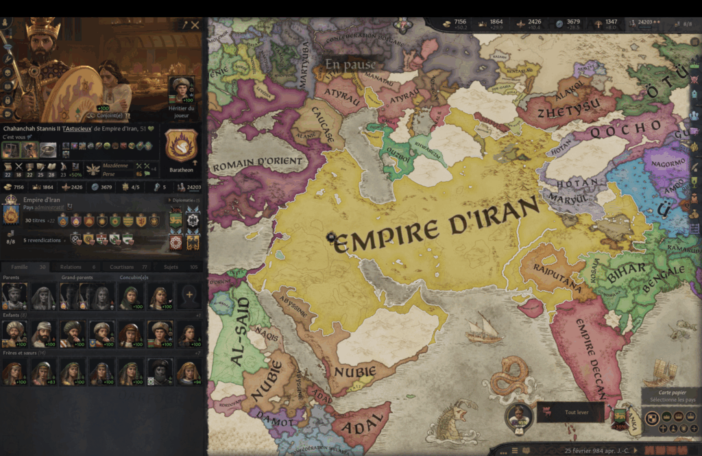 El sistema de dinastías en CKIV introduce rasgos heredables complejos que evolucionan mediante combinaciones genéticas y educación especializada. Cada miembro de la familia desarrolla legados dinásticos únicos que otorgan bonificaciones permanentes tras cumplir ciertos hitos históricos. La gestión familiar ahora incluye ceremonias de compromiso en la niñez y consejos de regencia automáticos cuando los herederos son menores de edad. Una innovación destacada es el Archivo Ancestral, donde se registran permanentemente las hazañas y escándalos de cada gobernante, afectando la reputación de la dinastía ante otras casas nobles.