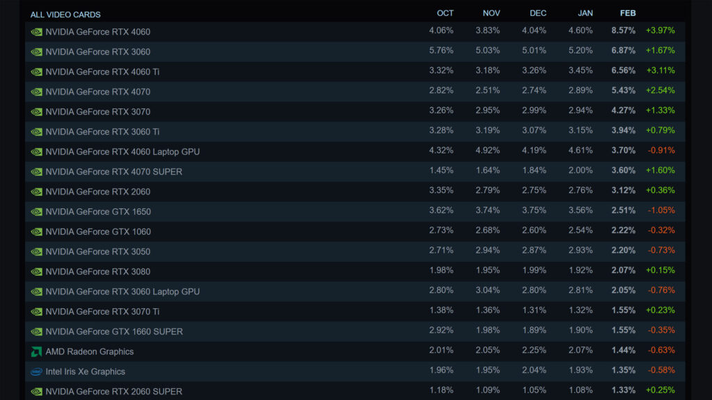- La NVIDIA RTX 4060 en las encuestas de Steam: Una opción asequible para jugadores